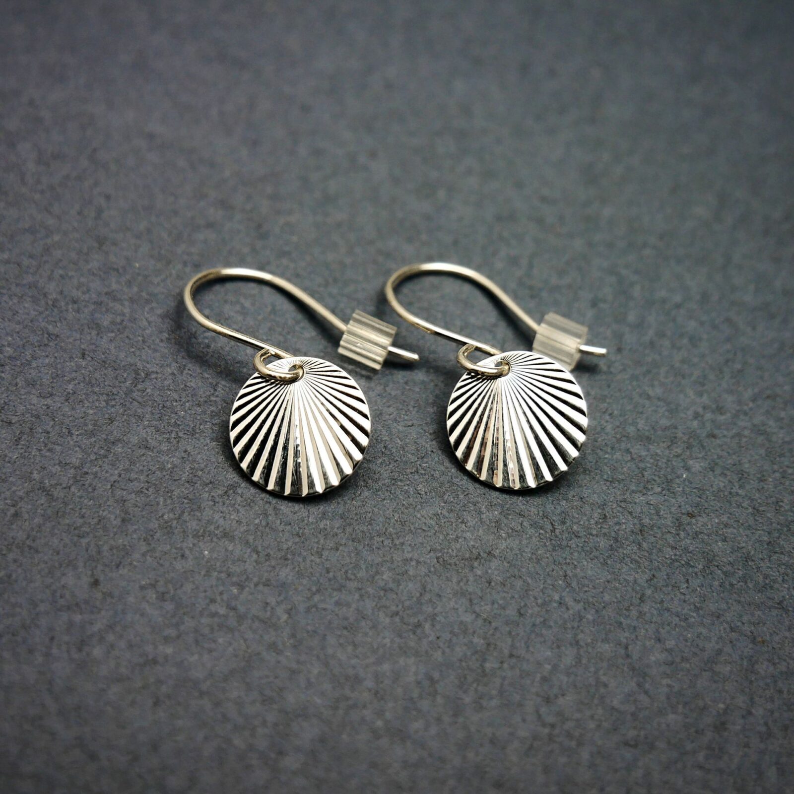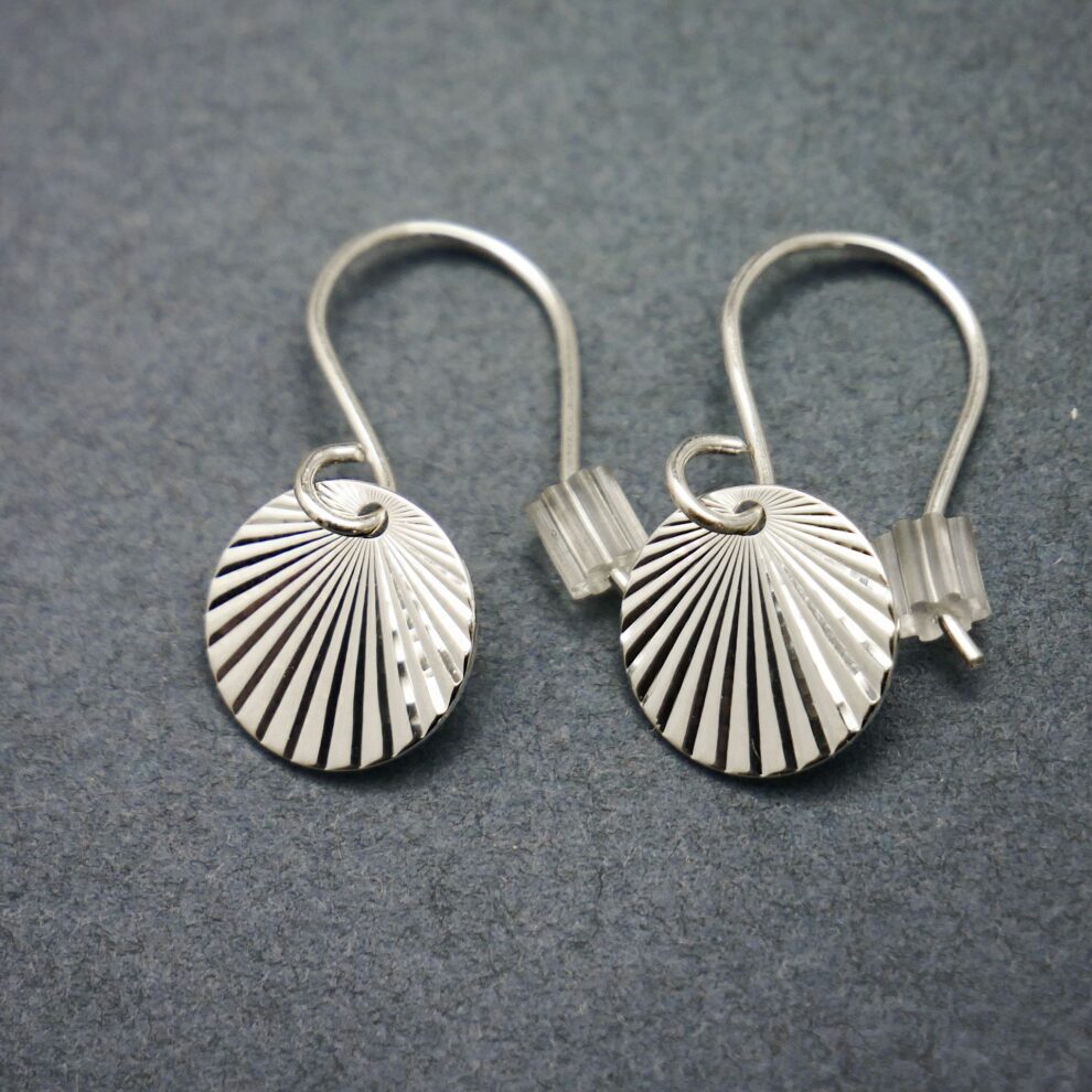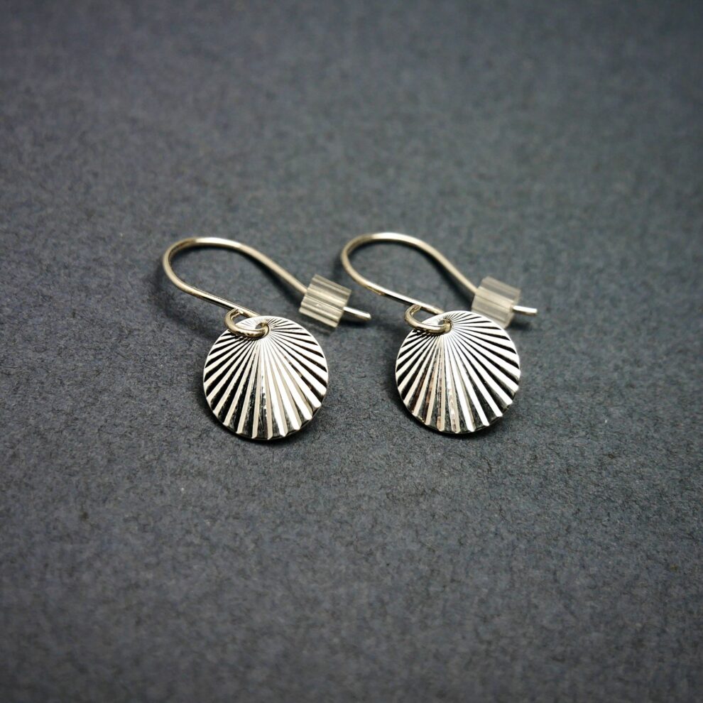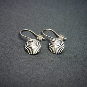 Boucles d’oreilles pendantes minimalistes en argent 925 recyclé, sans nickel. Inspirées du soleil levant, légères et délicates, elles se portent au quotidien ou en soirée.