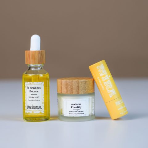 Ce coffret contient : un sérum « Or d’Arôme » (15 ml), un baume « Ros’Arôma » (15 ml) et une brume tonique « Brume d’Arôme » (50 ml).