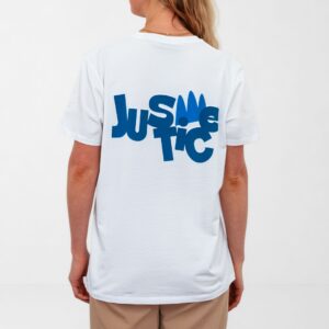 💙 Un message puissant : Graphisme « Justice » aux lignes affirmées, avec un rappel discret sur la poitrine et un visuel fort qui s’impose au dos.